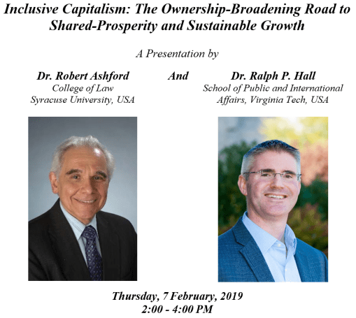 I will be speaking today with Prof. Robert Ashford (from 2-4pm) at Syracuse University’s Faraday House in London, about our ideas related to inclusive capitalism and sustainability. Please come and join us if you would like to learn more about these ideas. The event is open to the public.