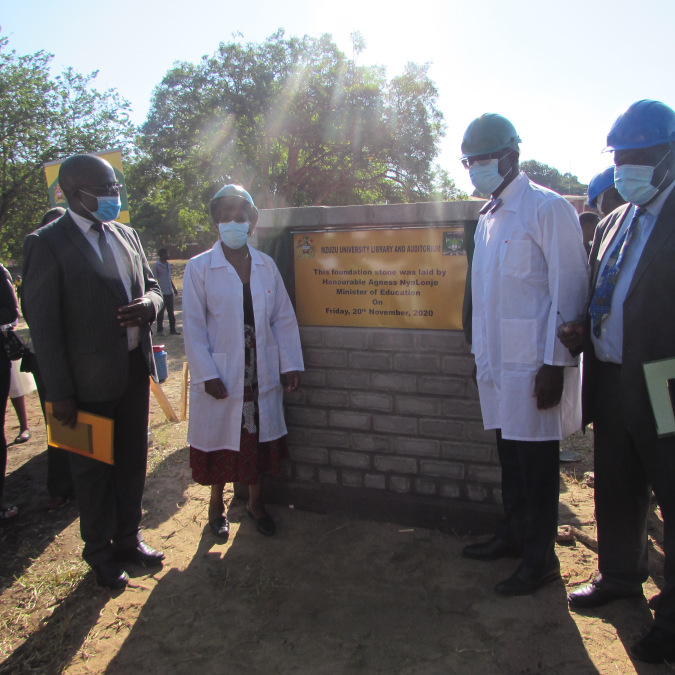 Last week, on November 20, this effort reached a major milestone when Agnes NyaLonje (the Minister of Education in Malawi) laid the first foundation stone of the new library and auditorium.