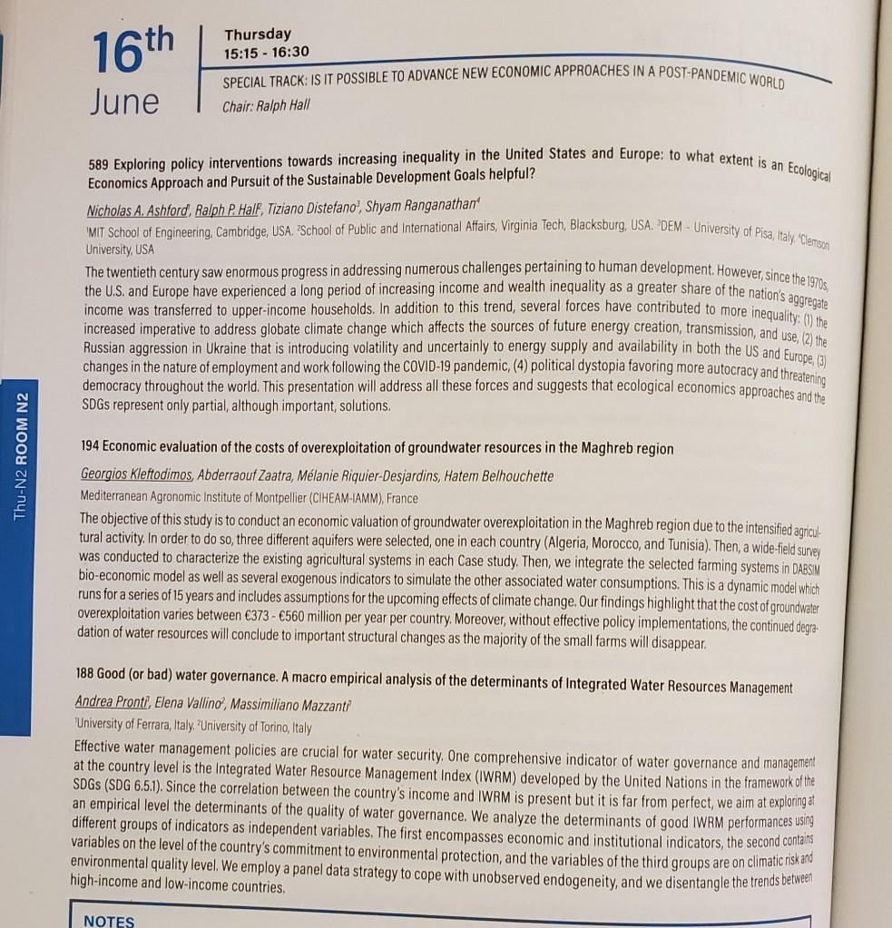 The recording of Dr. Tiziano Distefano (University of Pisa, Italy) seminar entitled “Theory for Action: Applying System Dynamics to Address Climate Change and Social Inequality,” can be accessed below. If you would like to read more about his research I recommend looking at this paper on Feasible alternatives to green growth and edited book on Water Resources and Economic Processes.