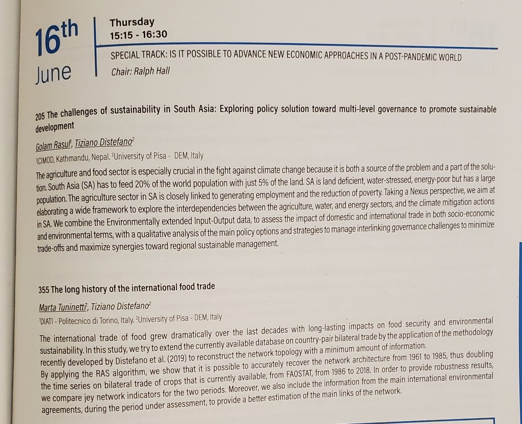 The second section of the program will consist of students attending the 14th Conference of the European Society for Ecological Economics (ESEE), which will be hosted by the University of Pisa.