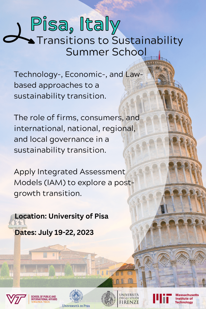 If you are a rising senior or graduate student at Virginia Tech and are looking for a unique sustainability-related study abroad experience, please find me on the Drillfield on Wednesday (September 21) to learn more about the planned 2023 Florence-Pisa program in Italy or signup for the information session that will be held from 3-4pm on Friday, October 14.