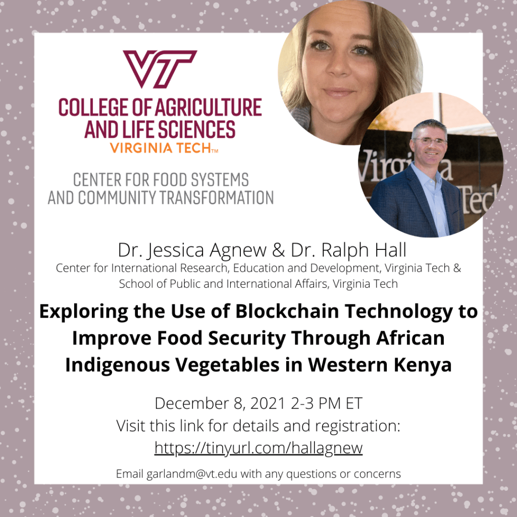 Agnew, J., & Hall, R. P. (2022). Policy Brief: Research evidence of the impacts of blockchain technology on improving food security through African Indigenous Vegetables in Western Kenya. USAID LASER PULSE, 4 pages. http://hdl.handle.net/10919/111580