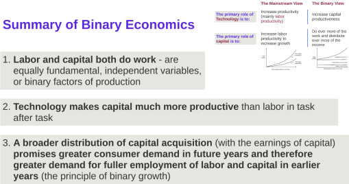 Our work together built on my long-term collaboration with Prof. Robert Ashford, who has been advancing Louis Kelso’s theory of binary economics throughout his academic career. The 90-second 100&Change video mentioned above outlined a proposal to provide citizens of a country with a capital ownership stake in their nation’s economic future. Using the principles of binary economics, people could acquire capital (i.e., an ownership stake in new and inherently sustainable goods and services) with credit repayable with pre-tax future earnings of capital (future savings).