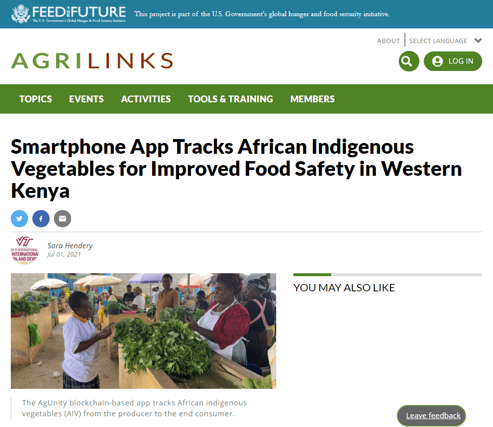 USAID LASER PULSE just released the following article on our research project in Kenya. The article includes a short video showing the AgUnity blockchain app being used by project participants along the African Indigenous Vegetable (AIV) supply chain.