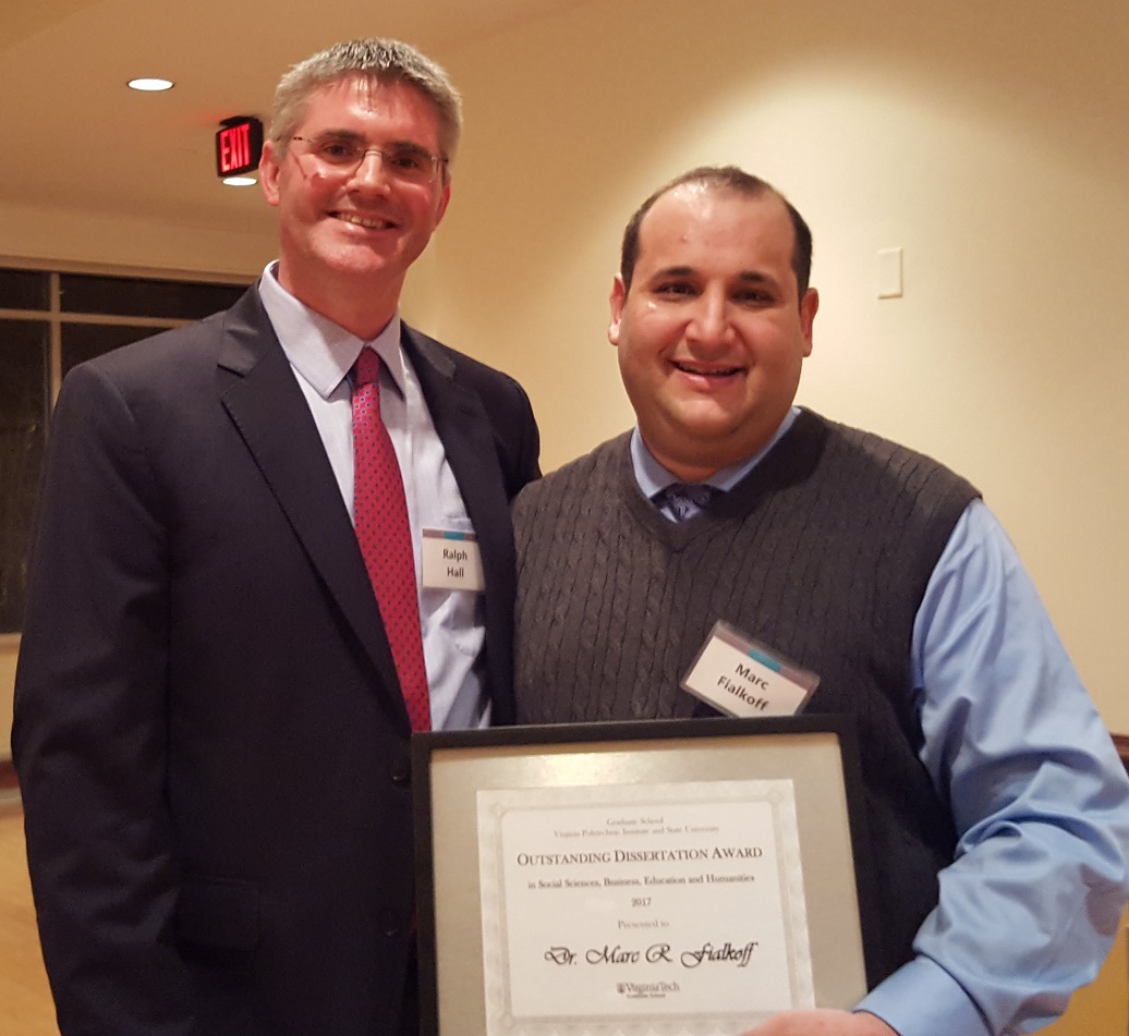 This evening I had the pleasure of attending Virginia Tech’s Graduate Awards Banquet where Marc Fialkoff received the award for Outstanding Dissertation in Social Sciences, Business, Education, and Humanities. This university-level award is a significant achievement and well deserved.